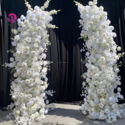 Rosa Blanca Flor guirnalda pasillo centros de mesa telón de fondo boda flor corredor arco flores decorativas