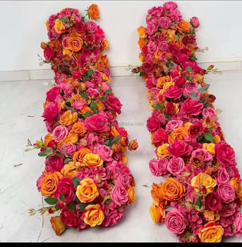Hot Pink naranja amarillo flor corredor boda flor guirnalda para boda escenario telón de fondo flor arco Decoración
